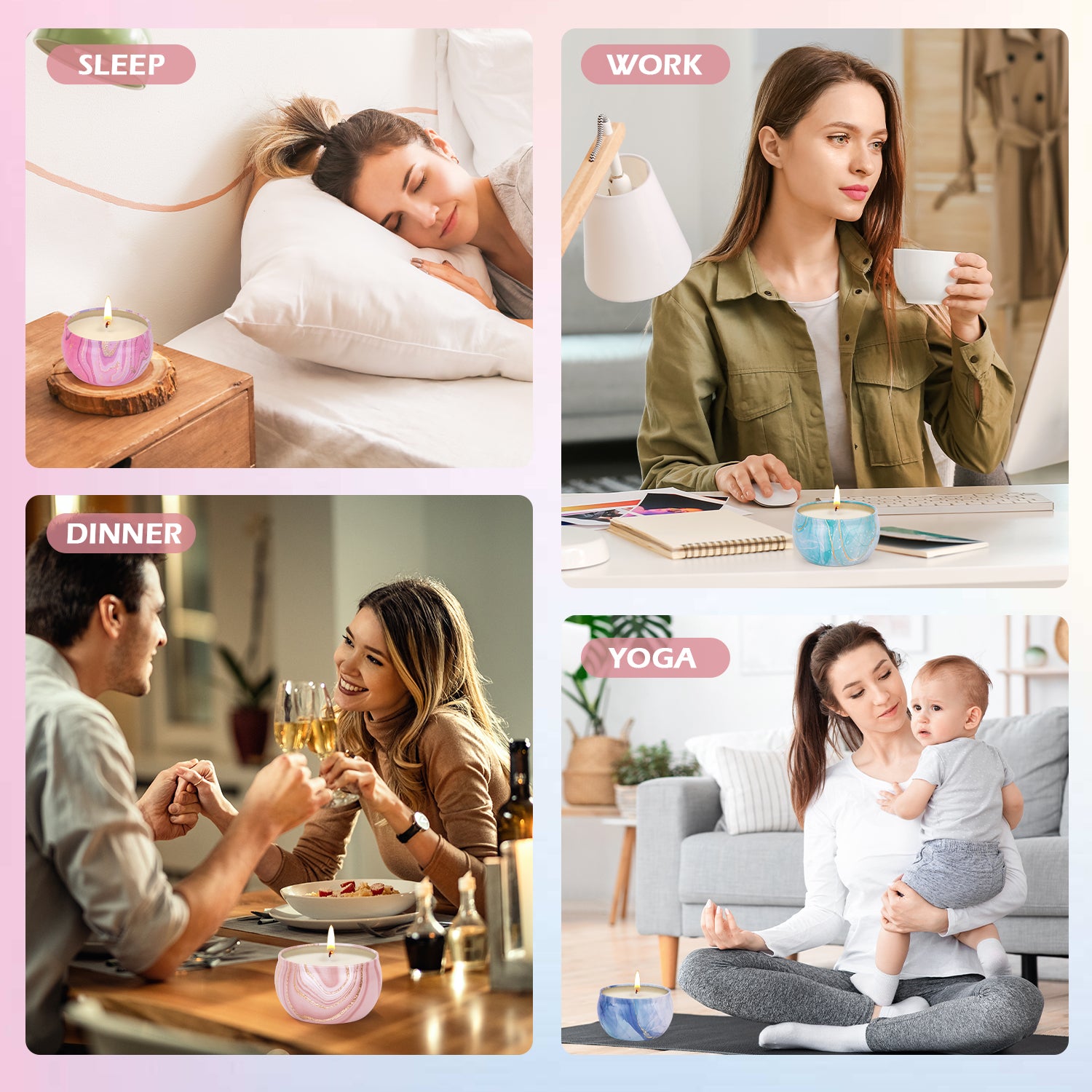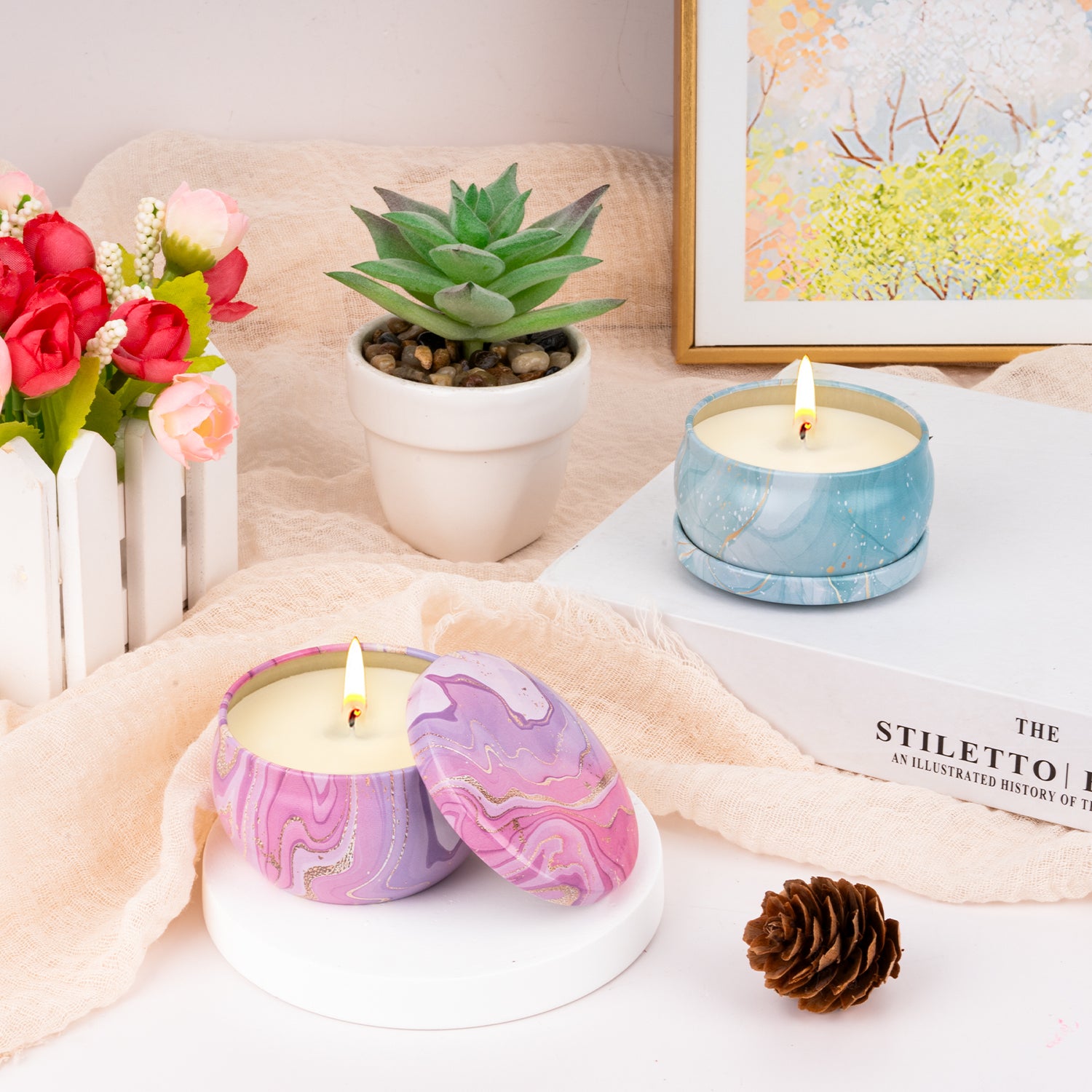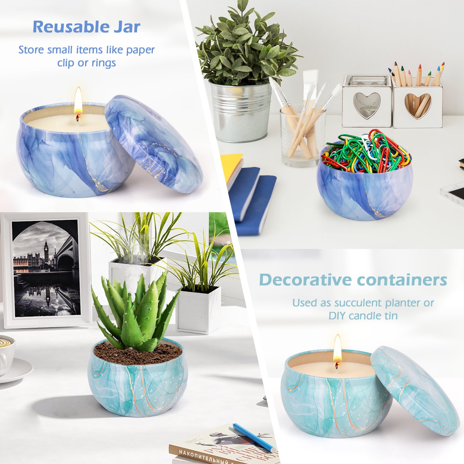 - BEAUTIFUL JAR - This aromatherapy candle is packed in a beautiful round jar with beautiful marble element patterns on it, fully demonstrating your high taste! When you run out of soy wax, the empty jars can also be used to store earrings, rings, necklaces and other small items, or even become delicate containers for growing small plants.