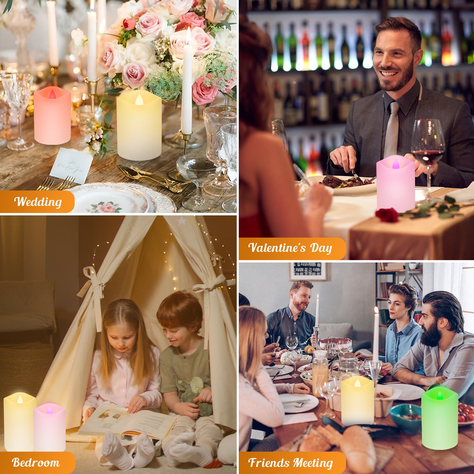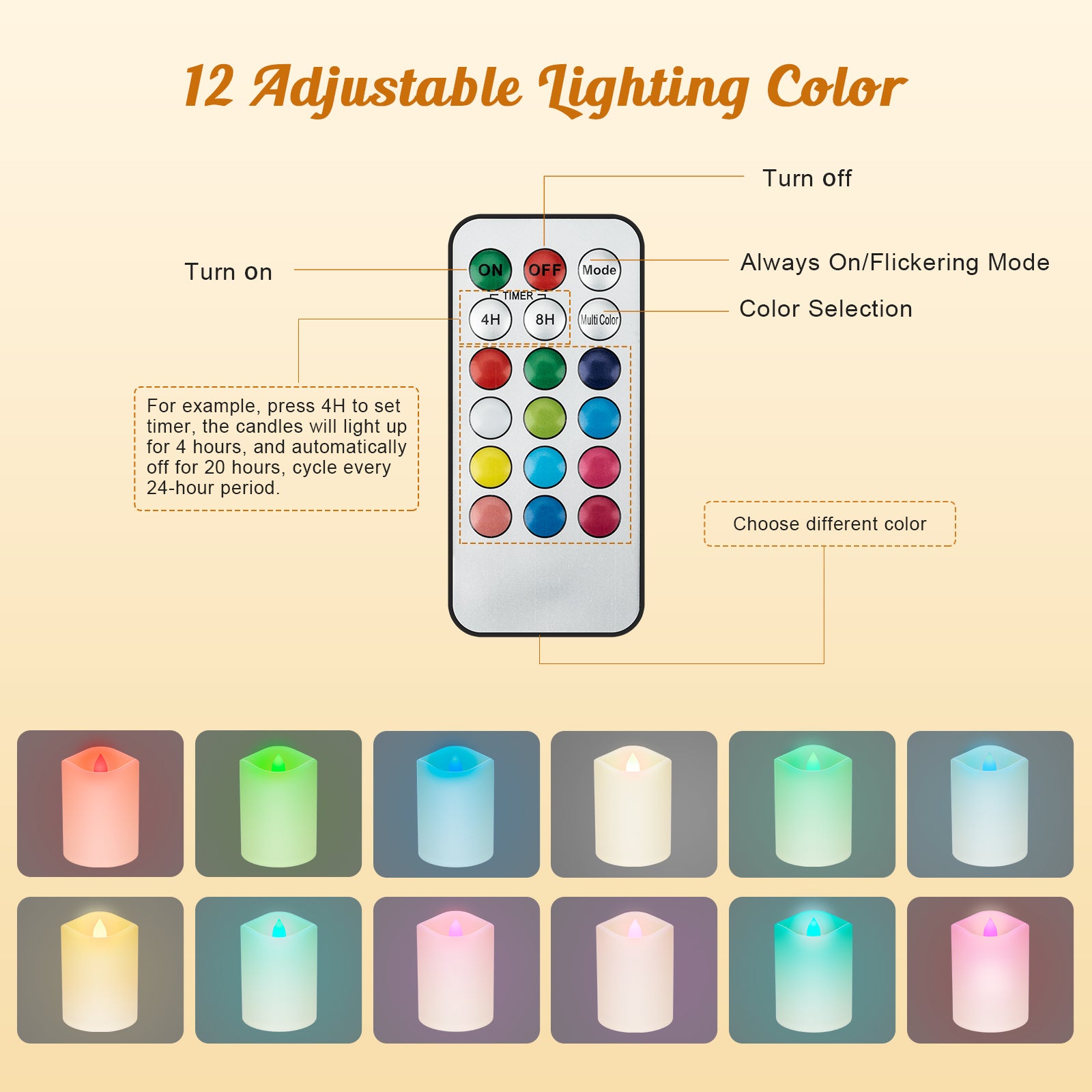 - Remote Timer Dimmer - Homemory has customized the functions you need. (1) 2 light modes, simulate flickering flame light or steady light. (2) The 2-4-6-8 hours timer function saves your time to turn these battery operated taper candles on and off at the same time every day. (3) Create the warmest lighting effect through the dimmer to make it brighter or softer depending on the mood you need.