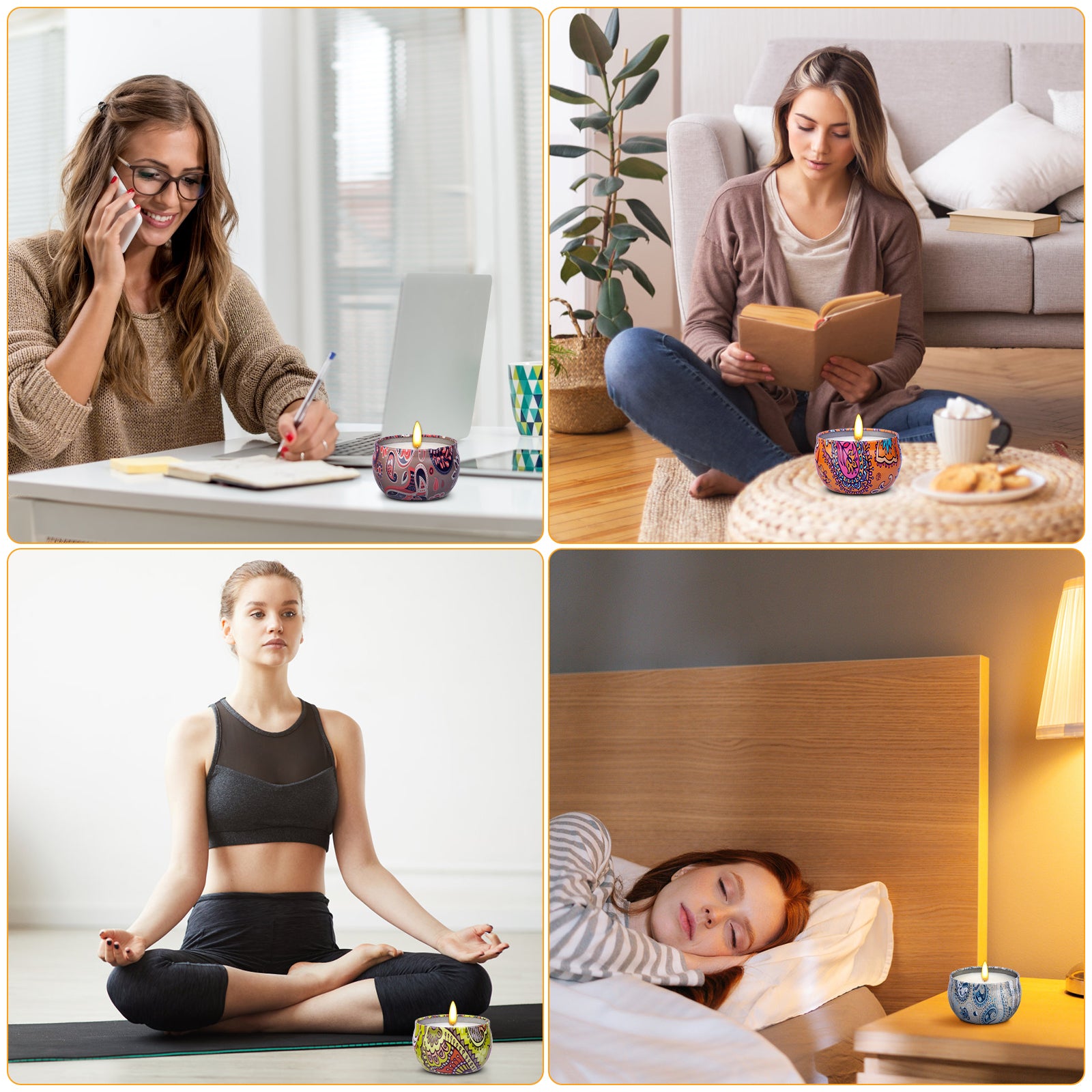 This 12-variety scented candle gift set features Strawberry,Bergamot,Lemon,Spring,Wood Sage&Sea Salt,Gardenia,Rosemary,Lavender,Blue bell,Rose,Mediterranean Fig,Peppermint. Made with 100% natural soy wax and lead-free cotton wicks, the non-toxic candles use pure plant essential oils, ensuring safety for pregnant women, babies, and families. Each 2.5oz candle burns 20+ hours (totaling ~240 hours). Lightweight and portable in decorative jars, the set comes in an elegant gift box—perfect for holidays like Mother's/Father's Day, Christmas, birthdays, or Valentine's gifts.