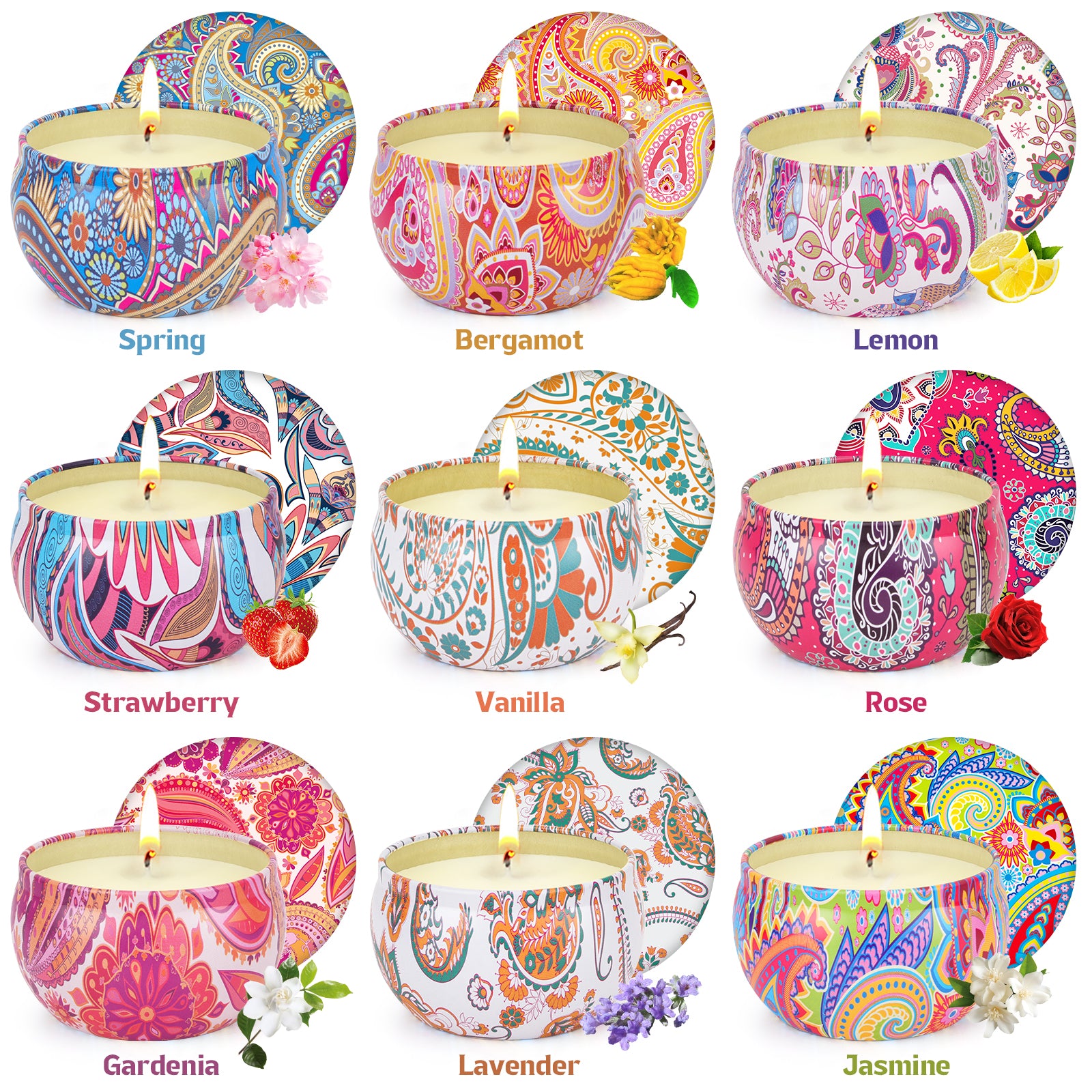 - ✔️Giphtpoeet Scented Candles:Contains 9 Scents:Spring,Bergamot,Lemon,Strawberry,Vanilla,Rose,Gardenia,Lavender,Jasmine.