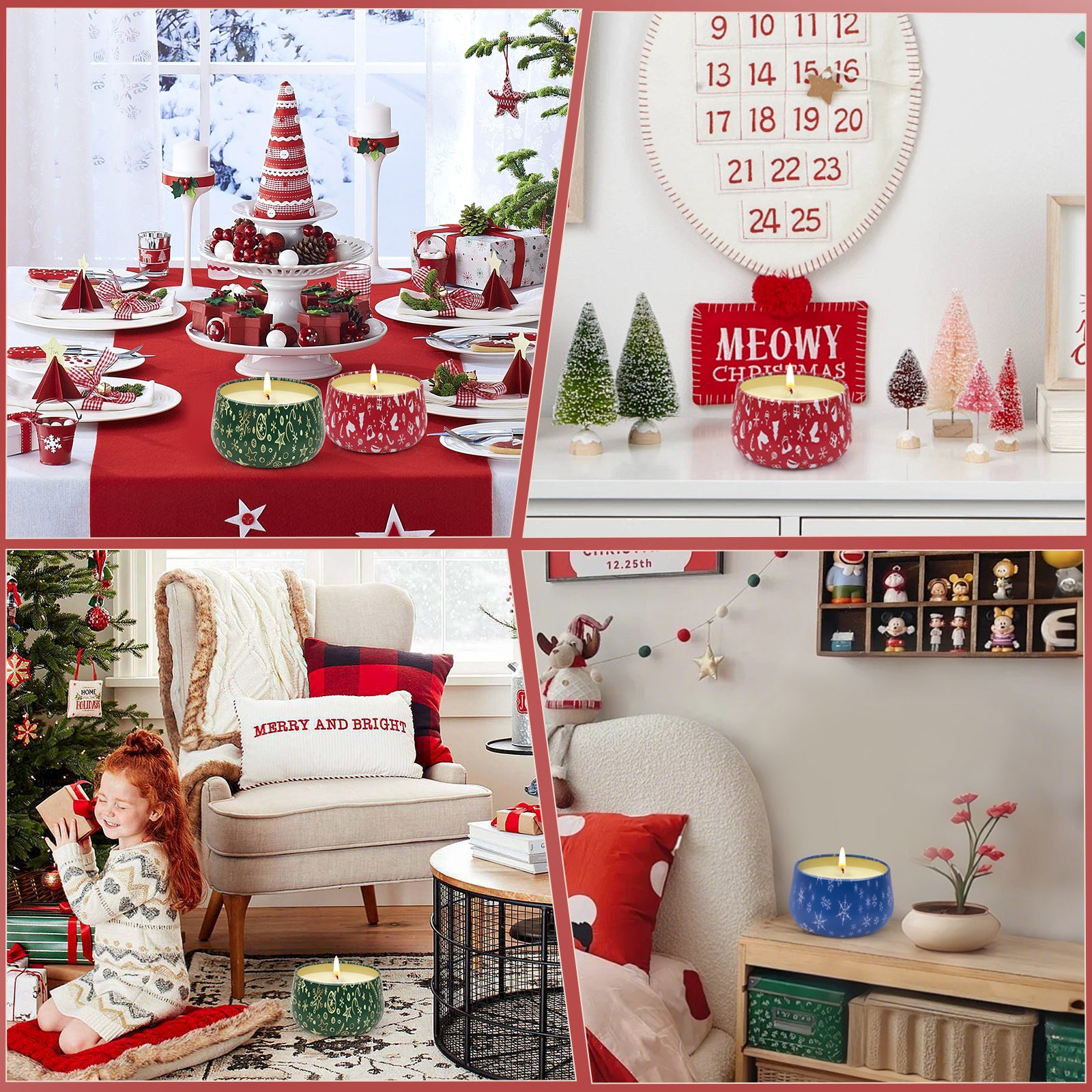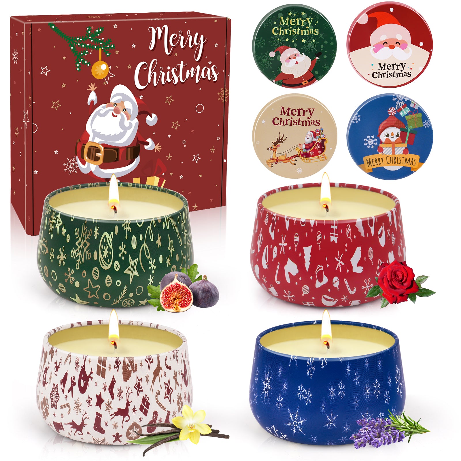 Giphtpoeet 4 Pack Christmas Scented Candles Gift Set for Woman, Jar Candle, 2.5 oz Soy Wax Tin Candle
