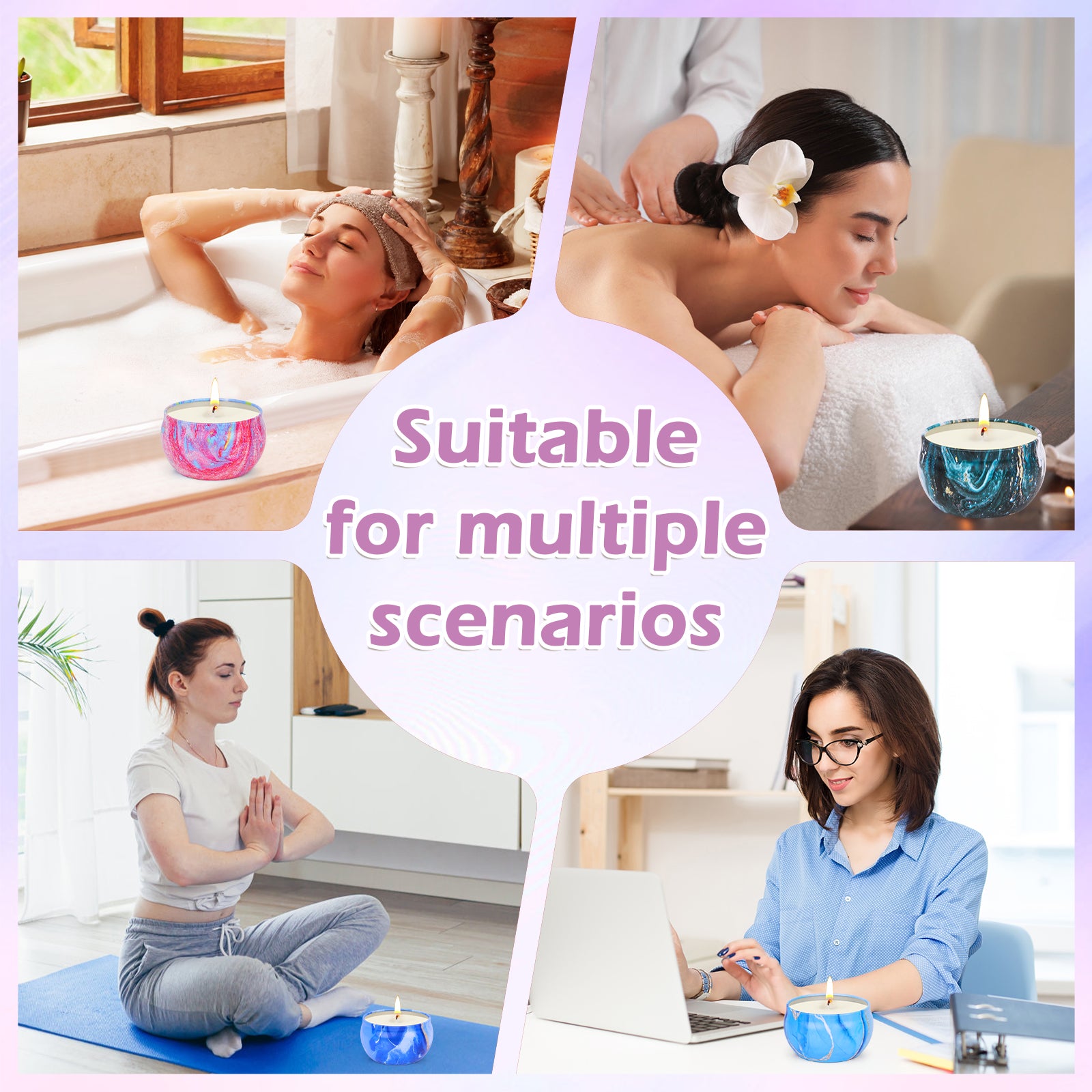 Handcrafted with 100% natural soy wax, these non-toxic candles feature luxurious marble designs and 9 calming fragrances (Jasmine, Vanilla, Peony Cherry, Freesia, Magnolia, Lotus, Lemon, Lavender, Rose) for 160 hours of clean, smoke-free ambiance. Works for Mothers Day Gifts, birthdays, anniversaries. Premium gift-ready packaging makes them ideal for birthdays, holidays, or home decor.
