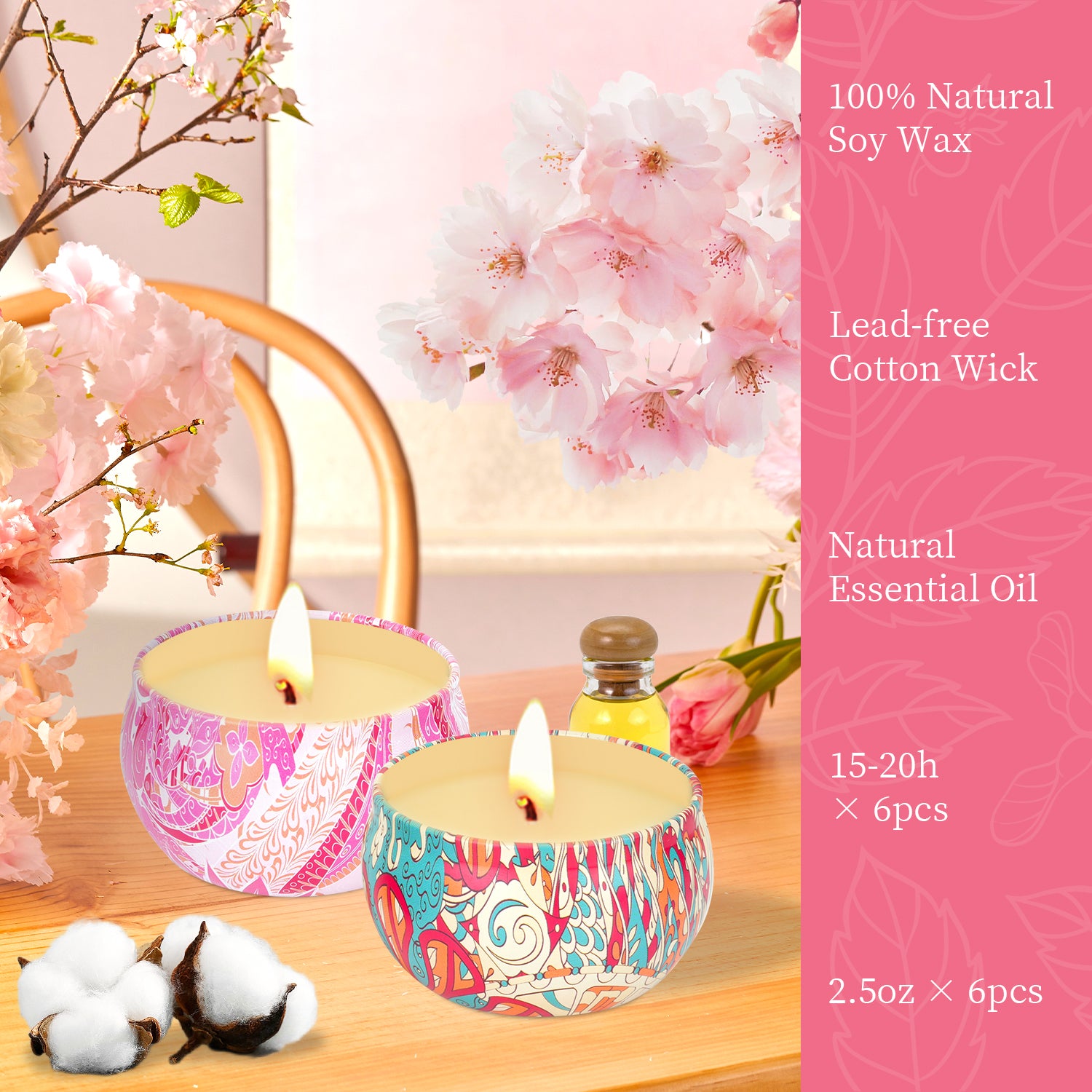 - 🌸 6 Popular Fragrance:Gardenia,Wood Sage & Sea Salt,Rose,Bergamot,Bule bell,Penoy Cherry Blossom