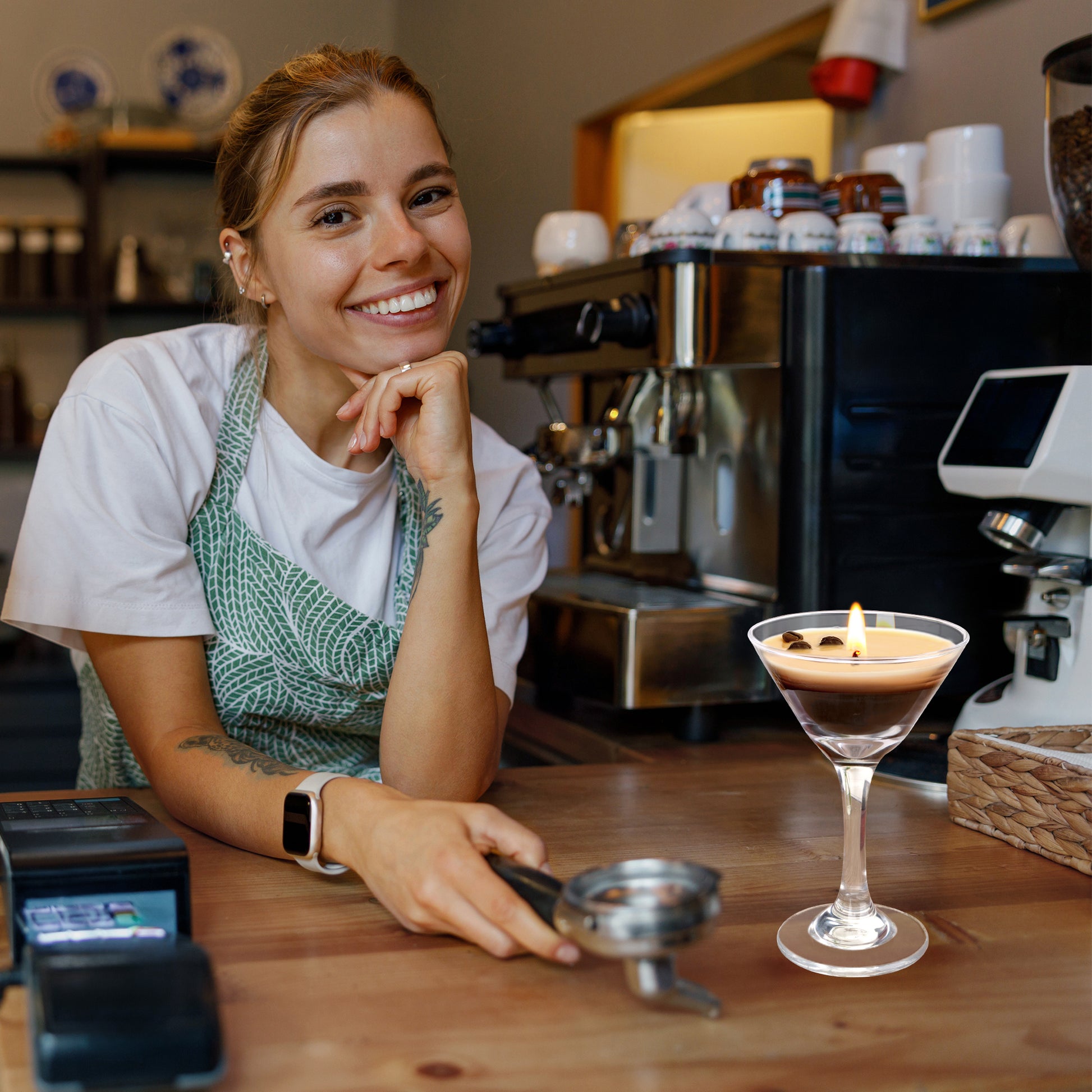Giphtpoeet Martini Coffee Candles blend elegance and eco-conscious design, crafted from clean-burning soy wax with natural cotton wicks for a long-lasting, safe fragrance. Presented in a unique martini-shaped glass, their warm glow and inviting aroma elevate spaces like coffee bars or homes, doubling as decorative focal points. Post-burn, the reusable glass transforms into a versatile container for storage or creative repurposing, making them ideal gifts for loved ones seeking thoughtful, functional charm.