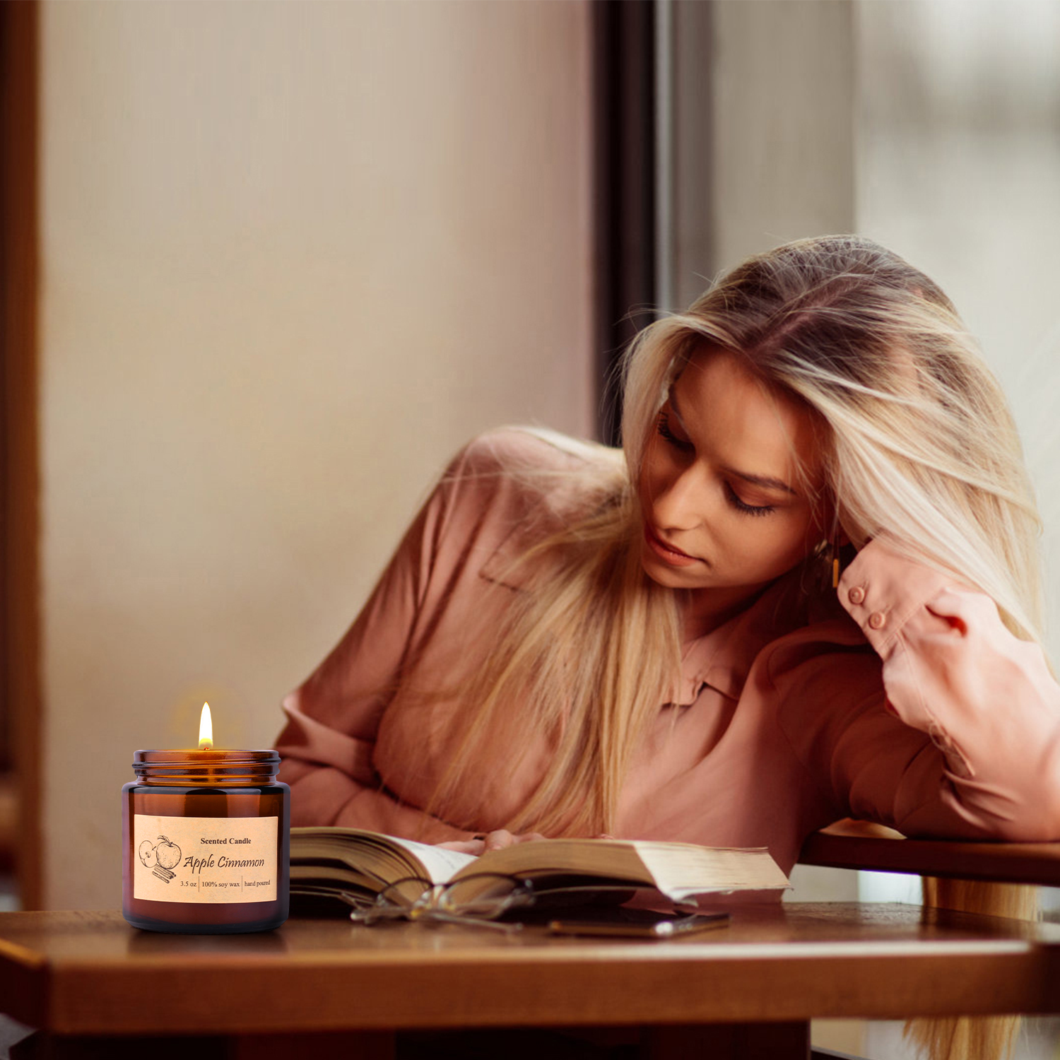 - 【6 Pack Scented Soy Wax Candles】This Candles for home scented includes 6 fragrances : Vanilla | Lavender | Jasmine | Rose & Sandalwood | Fig | Apple & Cinnamon. Each jar contains 3.5 oz (L 2.4'' x H 2.5''), burning time about 20-30 hours each jar.